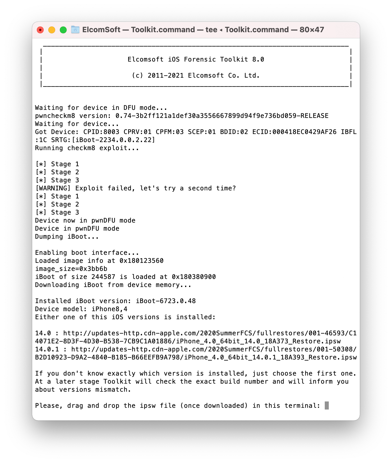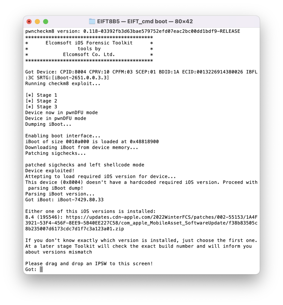 Elcomsoft iOS Forensic Toolkit Boot-Prozess