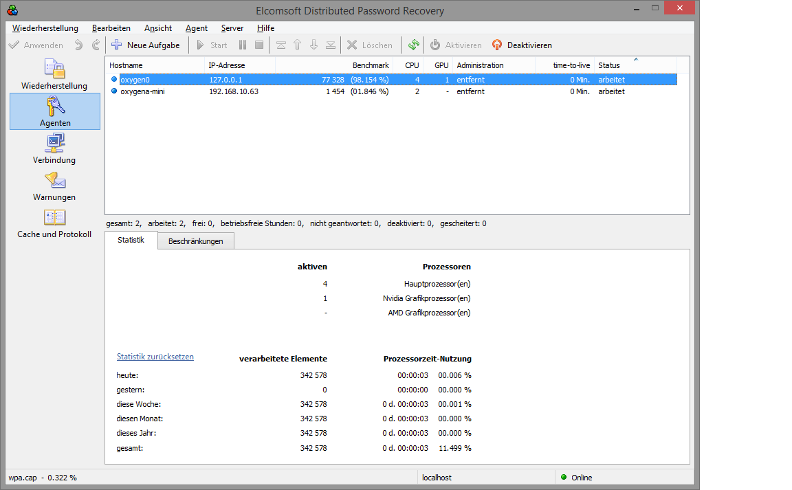 Elcomsoft Distributed Password Recovery (EDPR) Agenten deutsche Oberflaeche