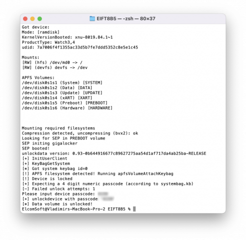 Elcomsoft iOS Forensic Toolkit Unlock-Prozess